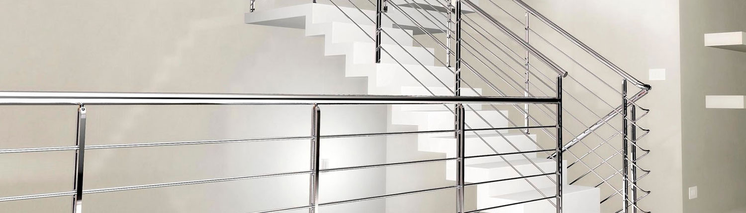 Merdivenlere, balkonlara, havuz kenarlarına ve inşaatların birçok bölümüne emniyeti ve hoş bir görünümü sağlamak için alüminyum korkuluk profilleri kullanılarak yapılan dekorasyona alüminyum küpeşte ve korkuluk sistemleri.